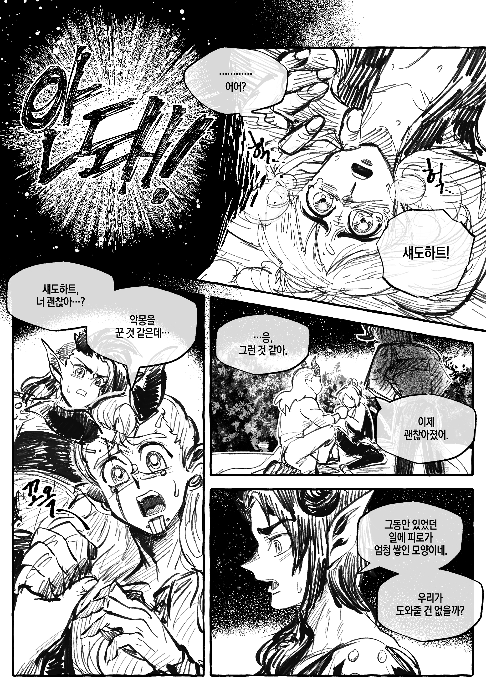섀도하트가 악몽을 꿨는데 끝에는 꽁냥꽁냥으로 끝나는 만화입니다.